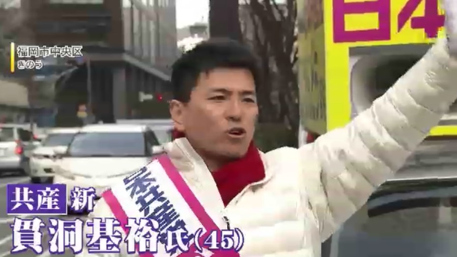 共産党の貫洞基裕さんは平和外交を掲げ、高市政権への批判票の獲得を狙いますが、厳しい戦いです。