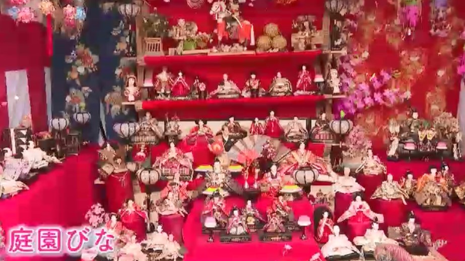外で眺める珍しい「庭園びな」に、30畳の大広間に所狭しと並べられた「座敷びな」も圧巻!