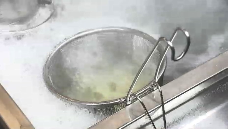 「うどん店の厨房、様々な工程で水を使います」