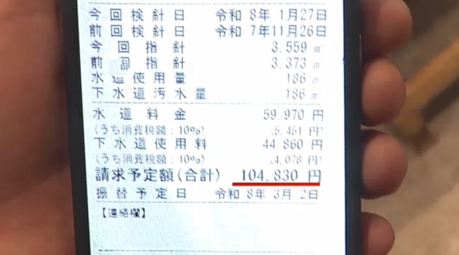 「12月・1月に使用した水道代は…10万4830円です。186トン」