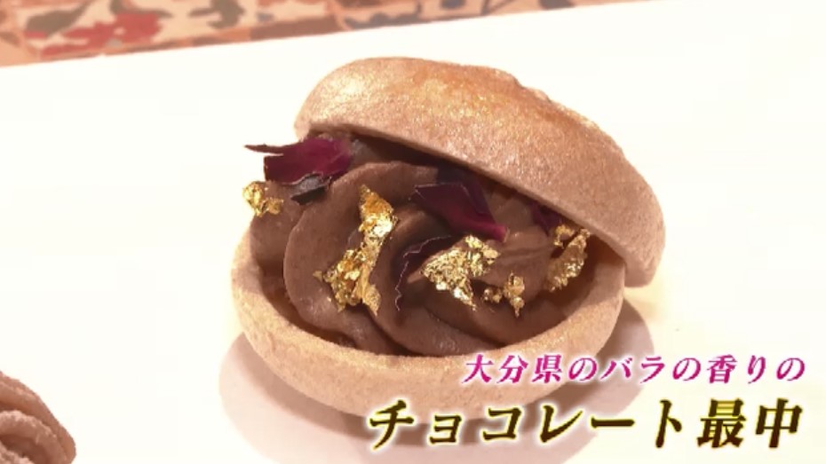 大分県産のバラを使った「チョコレート最中」が提供されました。