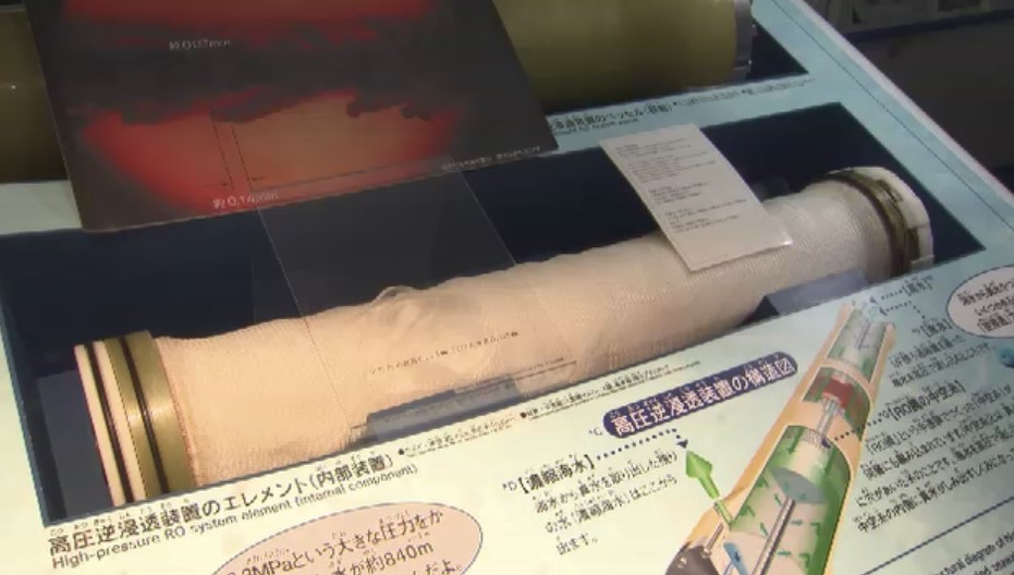 「その膜の中で、高い圧力の海水が入って、真水と塩分濃度の濃い海水に分かれて出てきます」