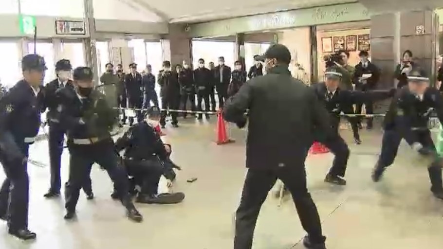 この訓練は、刃物を使った切りつけ事件が全国的に相次いでいることを受け、それに対応する適切な対処手順を確認しようと行われました。