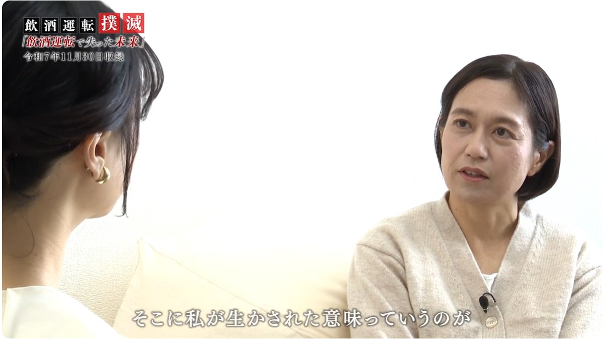「私は飲酒運転の事故で助かったから代弁者になることができたと思ってるんですよね。でも、多くの人が命を奪われてその事故と状況を知らない人たちがほとんどなんですよ。そこに私が生かされた意味っていうのがきっとあると思って、私は取り組んでいるんですけど。本当に安易な考えでしてしまう飲酒運転っていうものの恐ろしさっていうのを本当に心の真ん中で受けて止めてほしいなと思って。そしたら被害者というのは生まれないし、亡くなった命を大事に思ってる周りの人たちの人生っていうのも守られるから本気で考えてほしい」