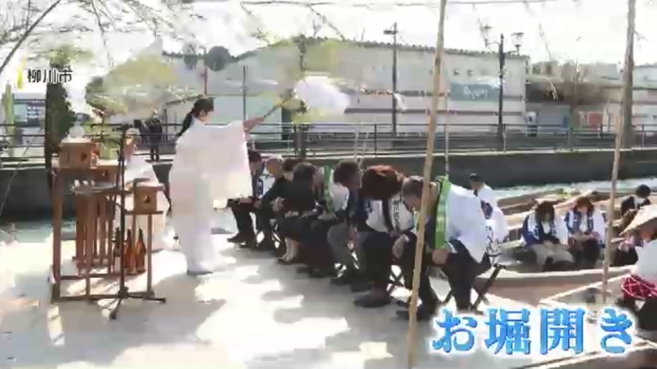 お堀開きは今年1年の川下りの安全を祈願する江戸時代から続く伝統行事で、一時的に堀割の水を抜いて清掃する「水落ち」の後、再び水を入れて行われます。