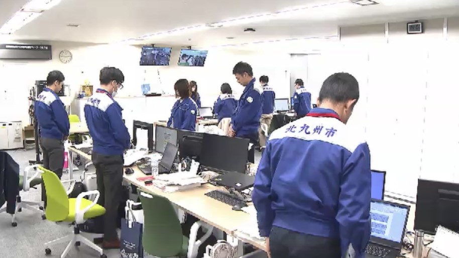 福岡県の北九州市役所には半旗が掲げられ、発災時刻の午後2時46分に合わせて職員が黙祷しました。