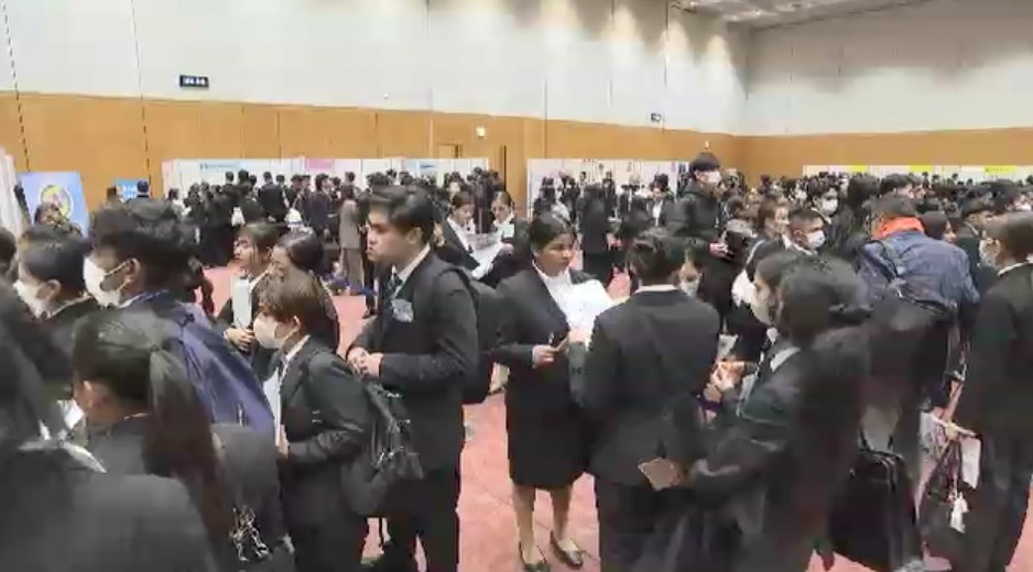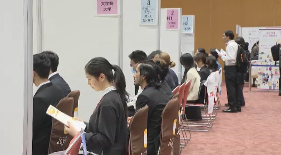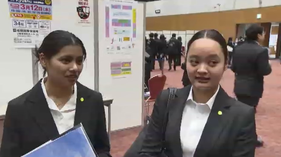 福岡市で12日、留学生向けの企業説明会が開かれ、九州各県の大学や専門学校などで学ぶ留学生約950人が参加しました。