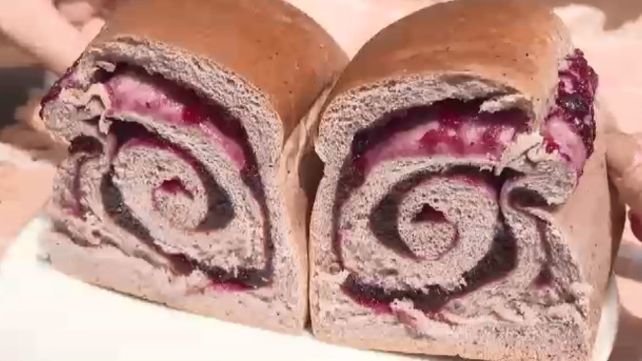一斤に130グラムものブルーベリーソースを巻き込んだこちらは、一日最高1000個を売り上げたという店の看板商品です。
