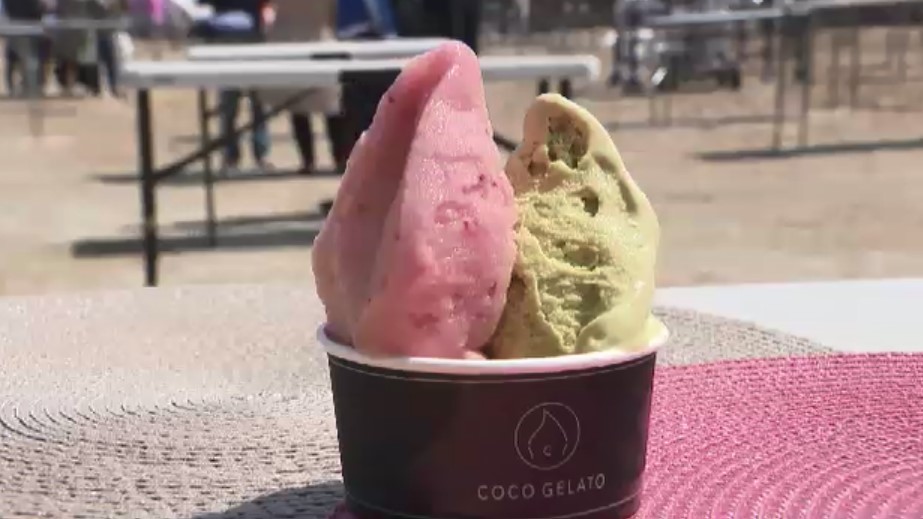 糸島産の完熟「あまおう」とイタリア産の濃厚なピスタチオを使ったこれからの季節にぴったりのジェラートにーー