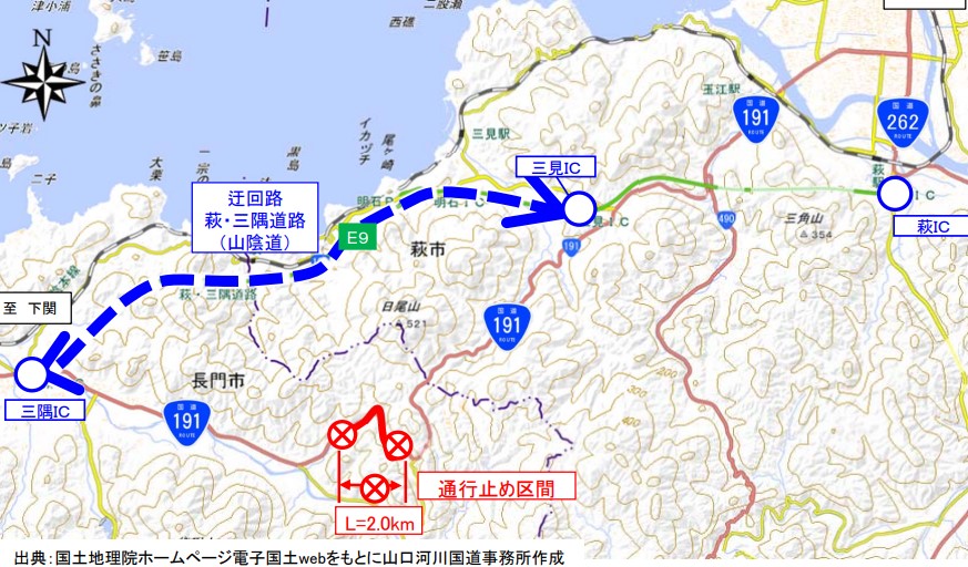 こぶし大の落石 走行中の軽自動車に衝突 山口・長門市の国道191号 さらに落石の恐れがあるため通行止め【28日午前0時現在】