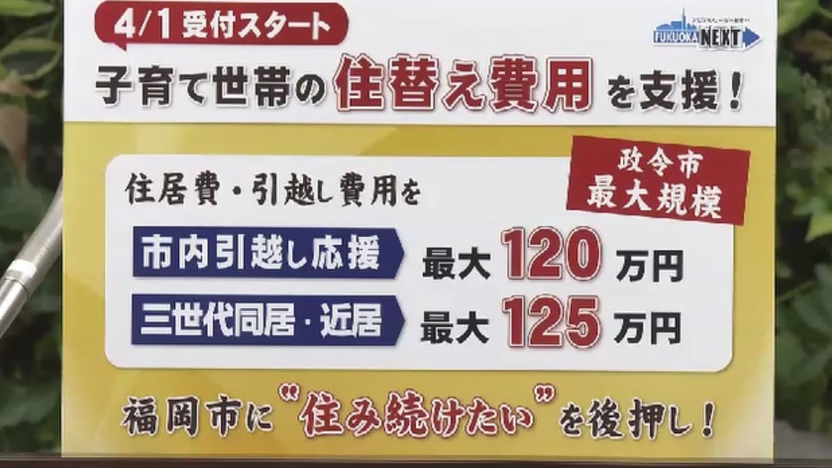 福岡市は、子育て世帯の市内での住み替えのための費用を、最大で125万円支援する事業を4月1日から始めました。