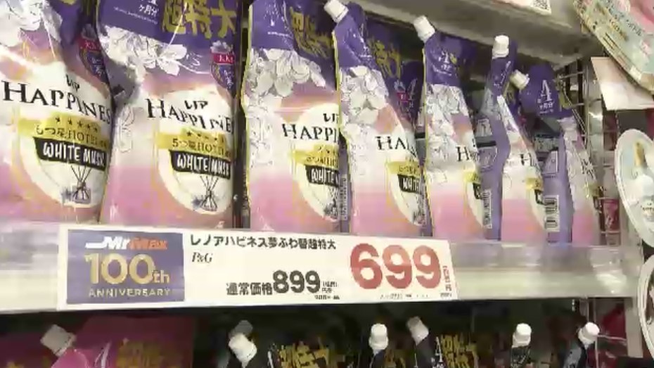 「こちらの柔軟剤です。詰め替えの超特大サイズを値下げしての販売なので、買い足しの手間を削減できます」