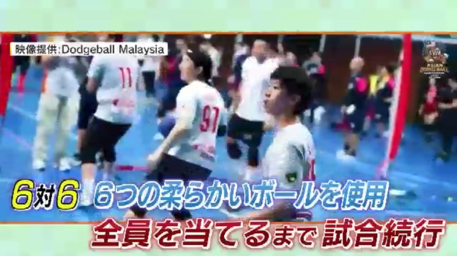 「フォームドッジボールといいます。日本のドッジボールと違って、ボールを6個使うところが大きな違い」