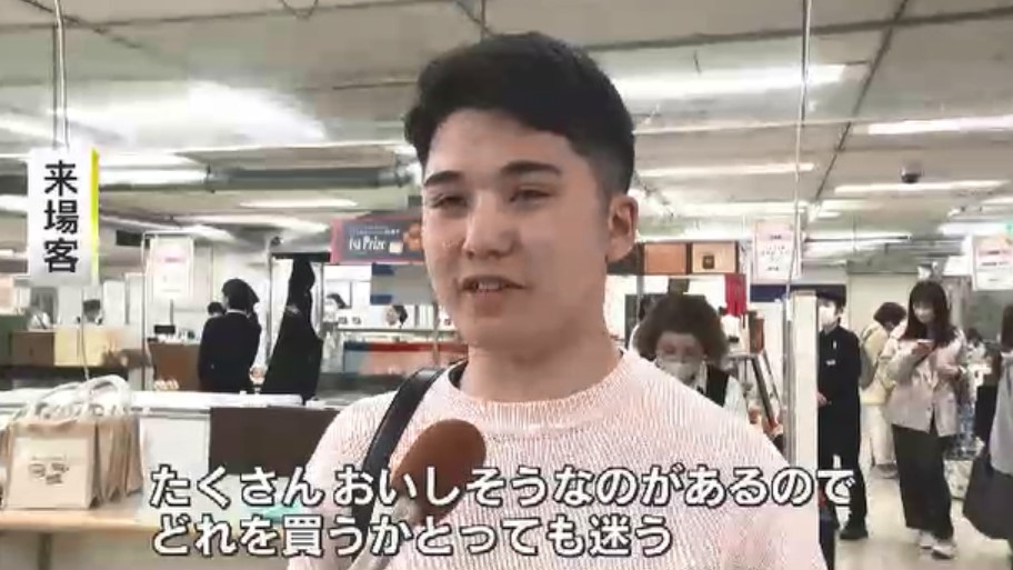 大丸福岡天神店で開かれているイベントでは、春を感じさせる桜の商品や、黒ゴマやオレンジを使ったインパクトのあるものまで、全国47都道府県から約400種類以上のバウムクーヘンが販売されています。
