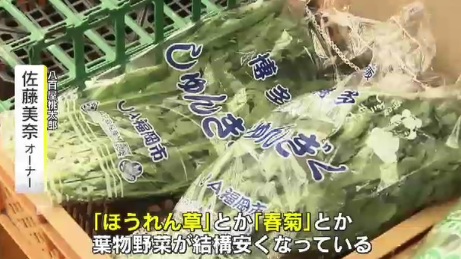 「『ほうれん草』とか『春菊』とか、葉物野菜が結構安くなっている。安い時にまとめて買って、小分けにして食べていただくと良い」