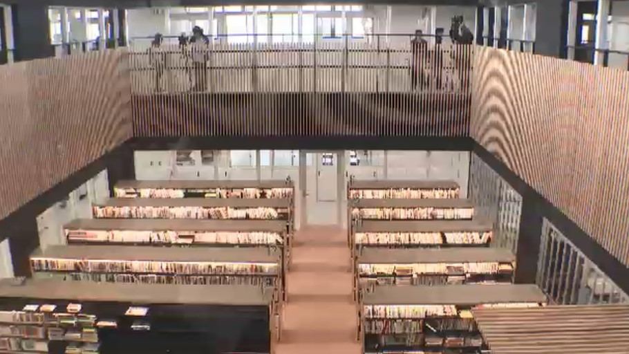 多目的スペースが設けられているほか、吹き抜けの図書館は全面ガラス張りとなっています。