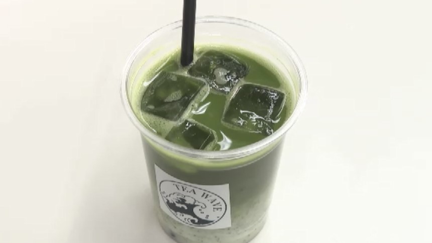 志布志市産の抹茶を通常の2倍使ったラテは、ほどよい苦みと濃厚な風味が特徴です。