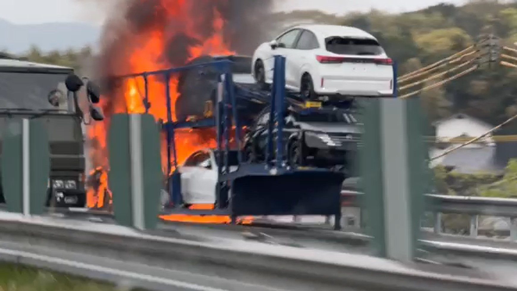 燃えていたのはキャリアカーで、車を6台積んで搬送中に火が出たとみられています。