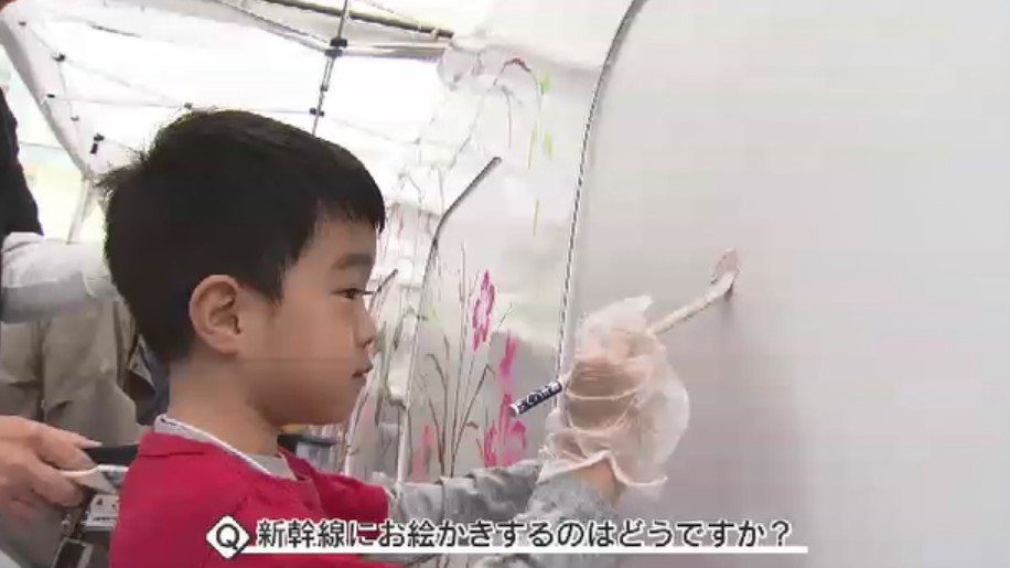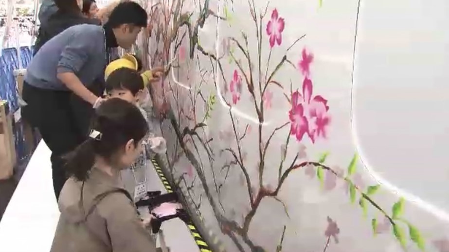 九州新幹線「つばめ」が“桜満開”へ 親子連れなど200人が車体にペイント JR博多駅前広場で10日にお披露目 福岡市