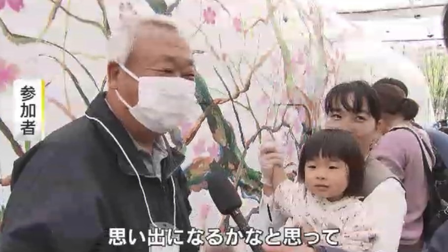 つばめの車両を桜で満開にしようというこのイベントに参加するため、鹿児島から3世代でやってきた家族も。