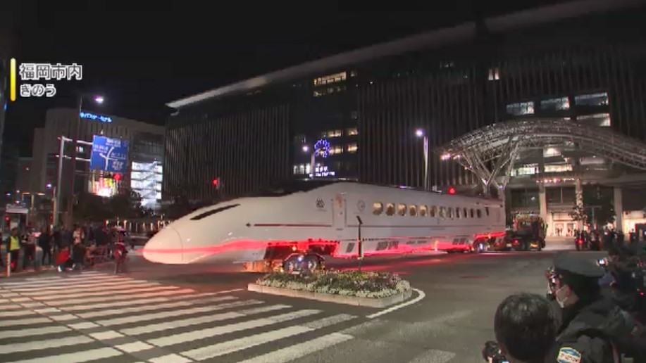 8日、JR博多駅前に姿を現した九州新幹線つばめの車両。