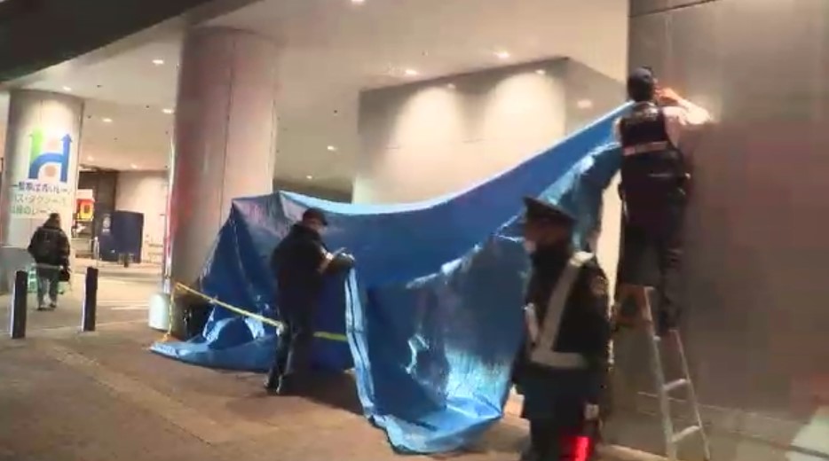 「現場はブルーシートが張られた場所とみられます。手前では鑑識作業の準備を始めています」