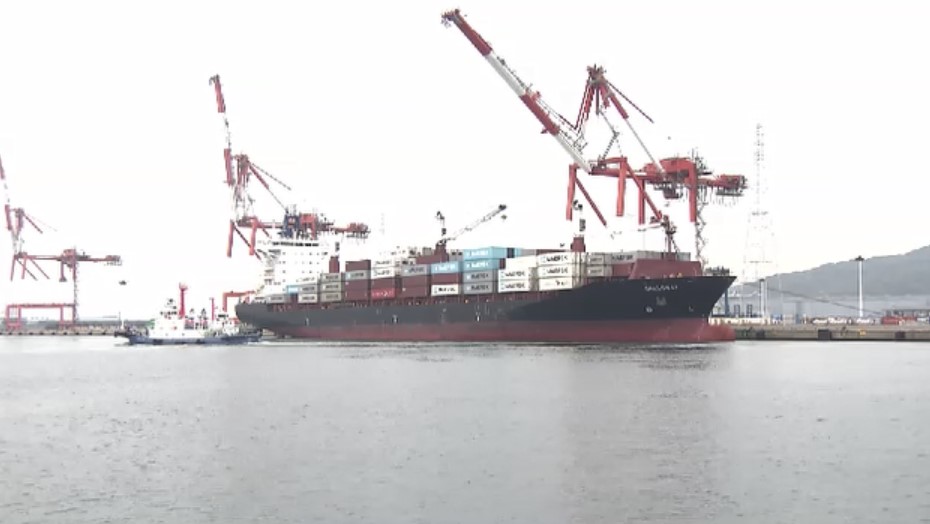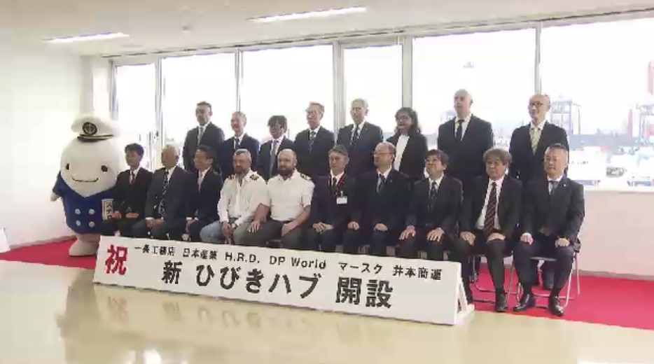 福岡県北九州市のひびきコンテナターミナルで14日、新たな国際航路の開設とハブ港としての物流拠点化を祝う式典が開かれました。