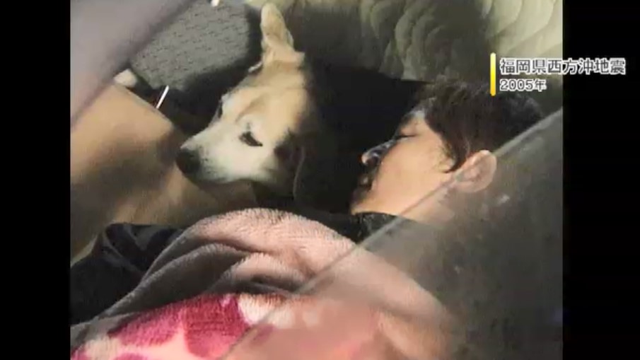ペットの防災と避難は社会の大きな課題となっていて、こちらは2005年の福岡県・西方沖地震の時に、飼い主の方がペットのイヌと一緒に「車中泊」をしている様子です。