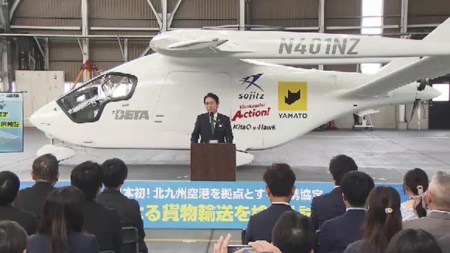 次世代の物流を担う「電動航空機」が17日、福岡県の北九州空港でお披露目され、貨物輸送の試験飛行が始まりました。