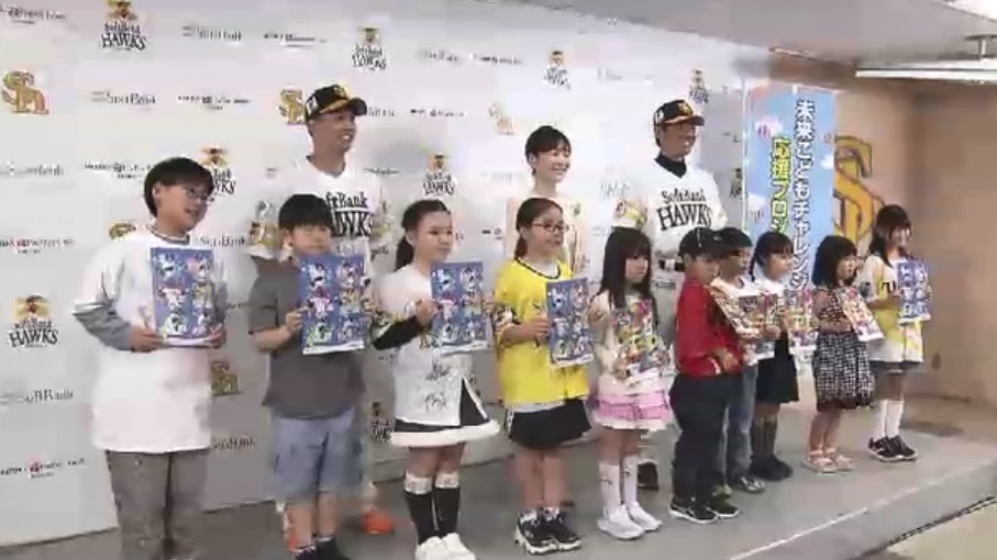 福岡市のみずほPayPayドームで18日に行われた贈呈式には、公募で選ばれた児童10人が出席しました。
