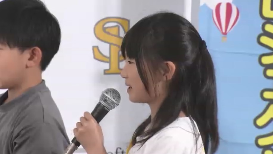「私たちはこれを使って、勉強やいろいろなことにチャレンジします。ホークスの選手の皆さんも日本一を目指して野球をがんばってください」