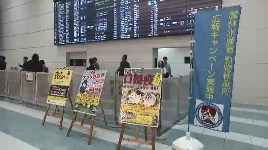 福岡空港の国際線到着ロビーでは、動物検疫所などの職員らが旅行者などに海外から違法な畜産物や動物を持ち込まないよう呼びかけました。