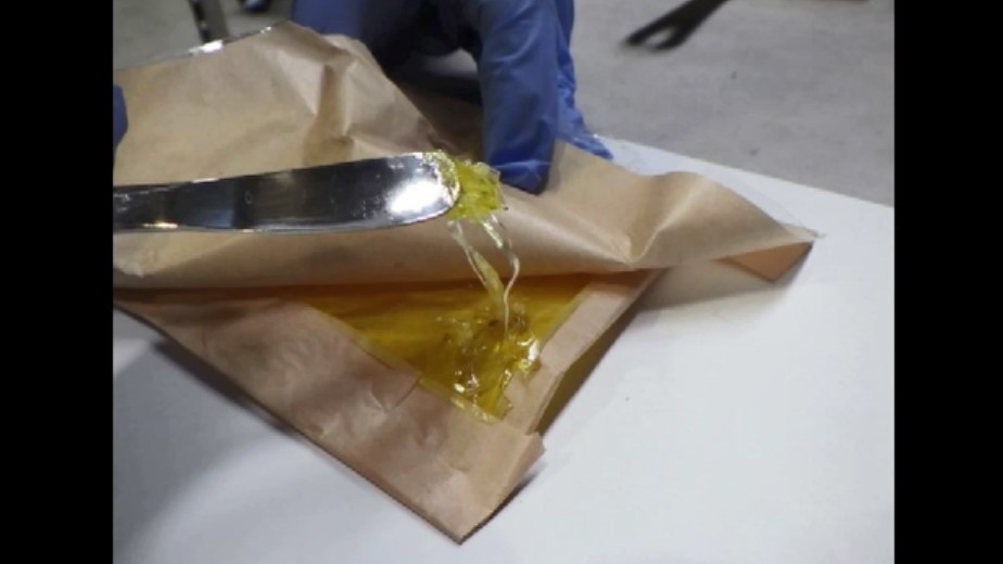 THCは固体に近い状態で茶色の袋に包まれ、小さなフライパンの間に隠されていて、関西国際空港で税関職員が発見しました。